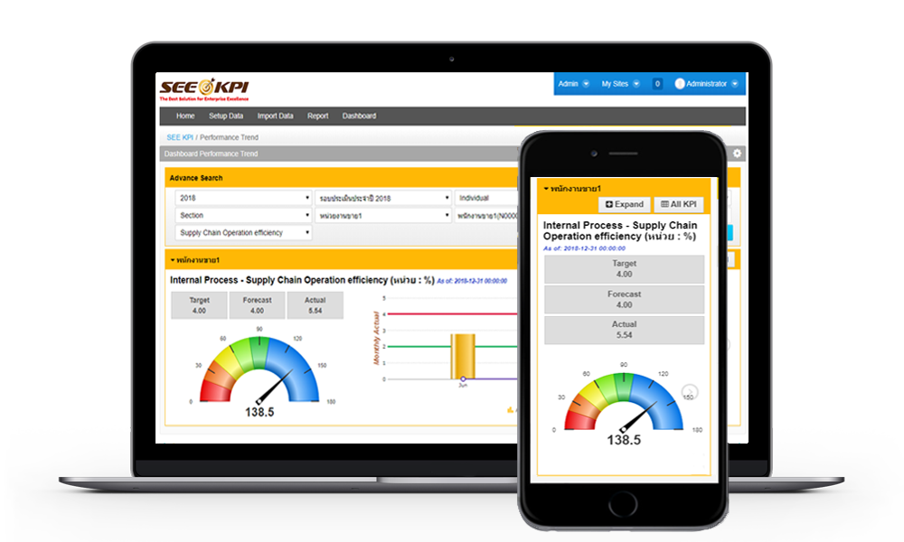 อีกหนึ่งจุดเด่นของโปรแกรม SEE KPI ก็คือ การติดตามผล ซึ่งจุดนี้สำคัญมาก เพราะหากเราสามารถติดตามผลการปฏิบัติงานได้ตลอดเวลาไม่ว่าจะในระดับองค์กร หน่วยงาน หรือพนักงาน ก็จะทำให้ความเสียงที่จะเกิดความเสียหายต่อองค์กรนั้นลดลง และด้วยระบบ Dashboard ที่สามารถดูง่าย เปิดดูได้จากทุกอุปกรณ์ อีกทั้งยังสามารถดูข้อมูลต่างๆได้อย่างครบครันทำให้ผู้บริหารสามารถควบคุมหรือปรับเปลี่ยนกลยุทธ์ในการดำเนินกิจการได้อย่างทันท่วงที่